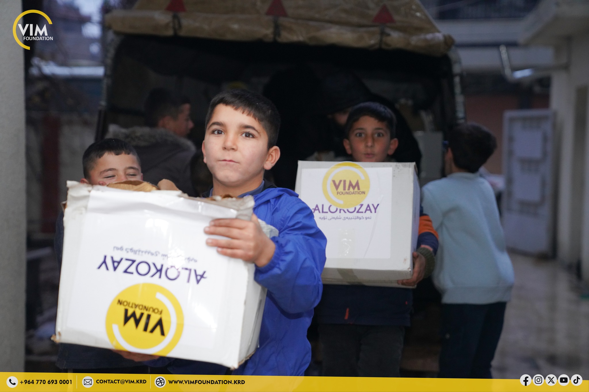 The companies Alokozay, Darwazay Garmiyan, and KIESO Company partnered with Vim Foundation for this campaign, contributing to the delivery of aid to Western Kurdistan.